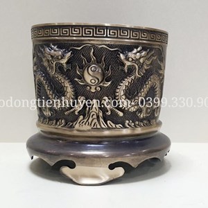 Bát hương đồng đỏ khảm ngũ sắc 23cm