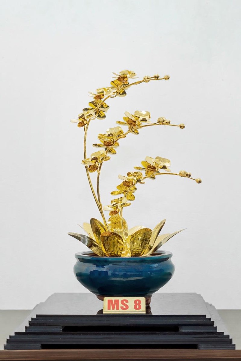Tên sản phẩm: Chậu lan Hồ Điệp tam thân huynh đệ bằng đồng mạ vàng 24K