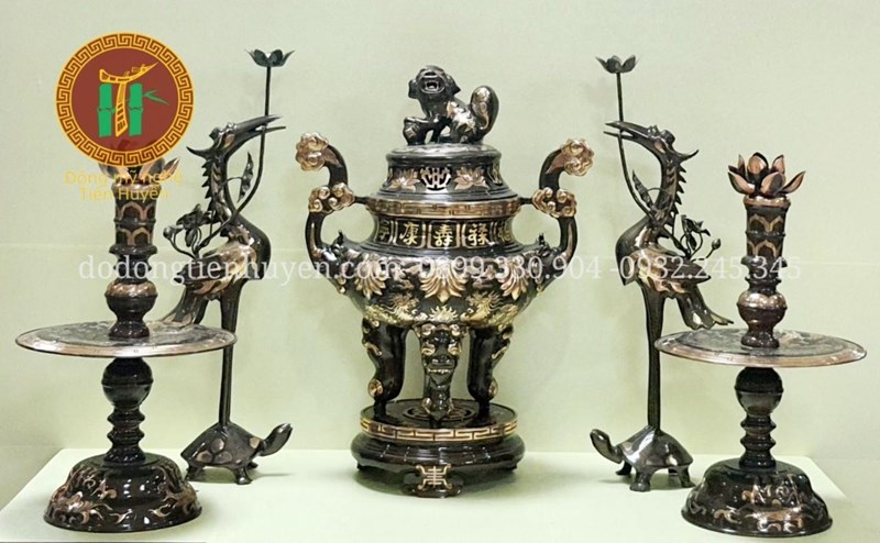 Đỉnh đồng thủ công được đúc hoàn toàn bằng phương pháp truyền thống cổ xưa lưu truyền đến ngày nay, mẫu hoa văn trên bộ lư đồng sắc nét tinh xảo thường có 3 mẫu hoa văn là song long trầu nguyệt,mẫu đỉnh hoa sòi và đỉnh dơi chữ phúc.Tất cả đều đúc bằng đồng nguyên chất bởi các nghệ nhân của làng nghề đúc đồng Đại Bái truyền thống.Những mẫu đỉnh đồng đúc thủ công độ bền vĩnh viễn nên được bảo hành trọn đời về độ bền. Đỉnh đồng được sử dụng rộng rãi trong thờ cúng tâm linh hiện nay.