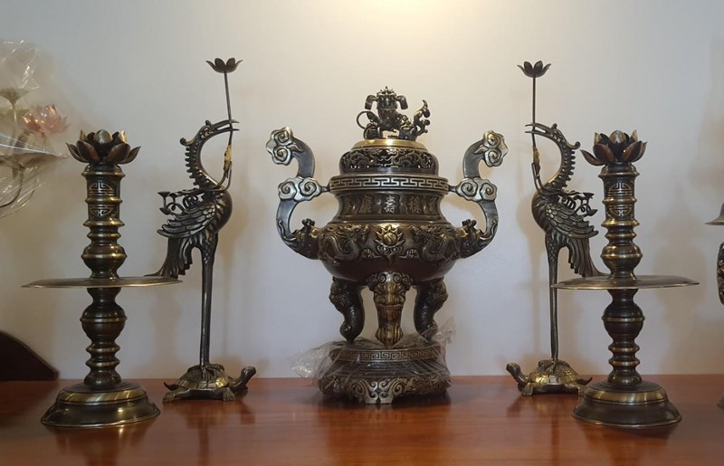 Đỉnh đồng thủ công được đúc hoàn toàn bằng phương pháp truyền thống cổ xưa lưu truyền đến ngày nay, mẫu hoa văn trên bộ lư đồng sắc nét tinh xảo thường có 3 mẫu hoa văn là song long trầu nguyệt,mẫu đỉnh hoa sòi và đỉnh dơi chữ phúc.Tất cả đều đúc bằng đồng nguyên chất bởi các nghệ nhân của làng nghề đúc đồng Đại Bái truyền thống.Những mẫu đỉnh đồng đúc thủ công độ bền vĩnh viễn nên được bảo hành trọn đời về độ bền. Đỉnh đồng được sử dụng rộng rãi trong thờ cúng tâm linh hiện nay.