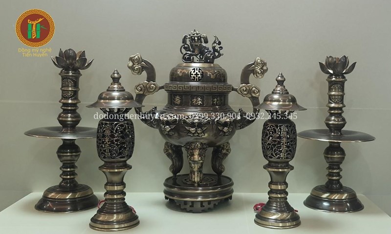 Đỉnh đồng thủ công được đúc hoàn toàn bằng phương pháp truyền thống cổ xưa lưu truyền đến ngày nay, mẫu hoa văn trên bộ lư đồng sắc nét tinh xảo thường có 3 mẫu hoa văn là song long trầu nguyệt,mẫu đỉnh hoa sòi và đỉnh dơi chữ phúc.Tất cả đều đúc bằng đồng nguyên chất bởi các nghệ nhân của làng nghề đúc đồng Đại Bái truyền thống.Những mẫu đỉnh đồng đúc thủ công độ bền vĩnh viễn nên được bảo hành trọn đời về độ bền. Đỉnh đồng được sử dụng rộng rãi trong thờ cúng tâm linh hiện nay.