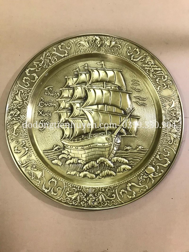 Tên sản phẩm: Mâm Thuận Buồm Xuôi Gió bằng đồng giả cổ