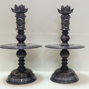 Đôi nến đồng đỏ khảm ngũ sắc